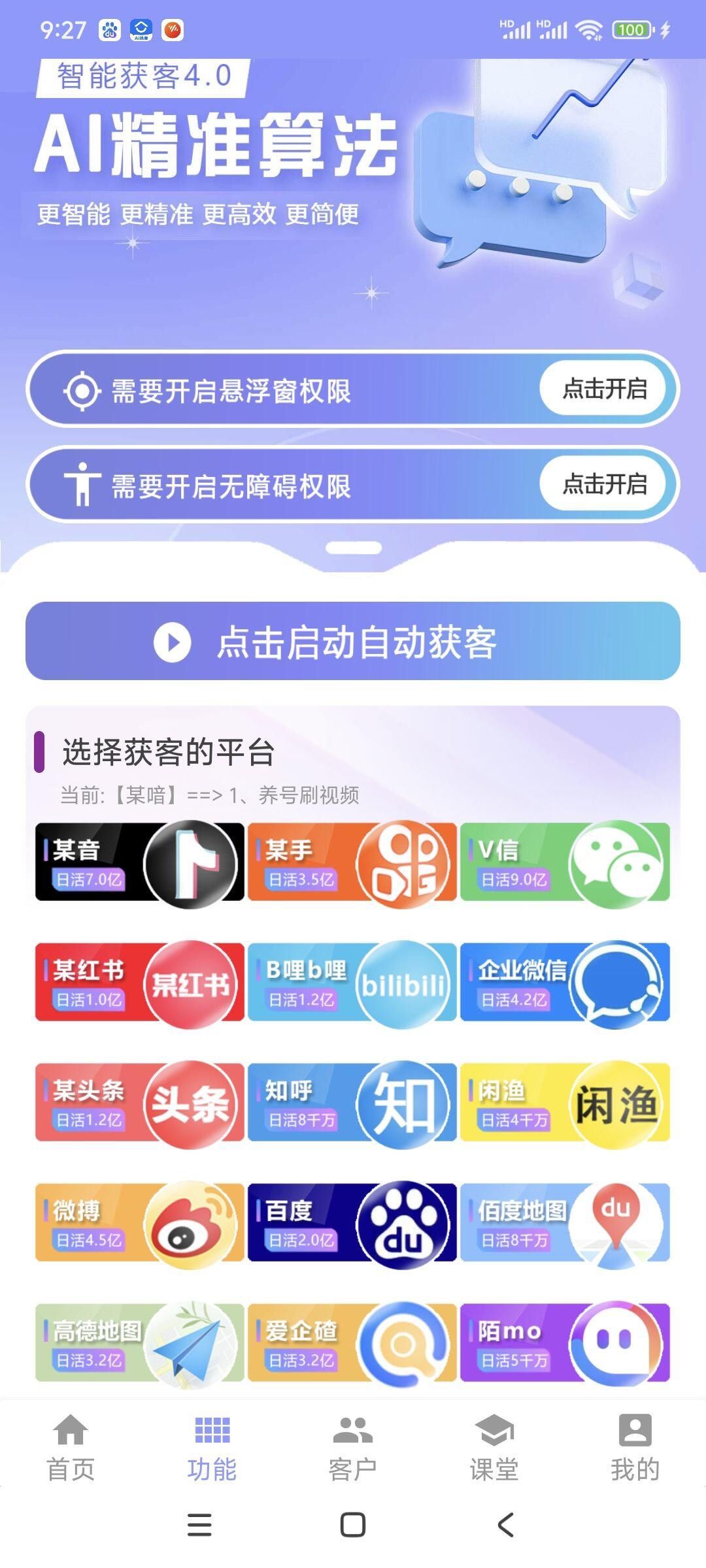 AI云获客4.0全域获客一键打通20+主流平台正版优势出卡,无限码后台几百带走,智能抓取评论区/粉丝/视频作者,自动私信+点赞+评论 三维度截流适配各平台最新版本内置适配教程、APP下载