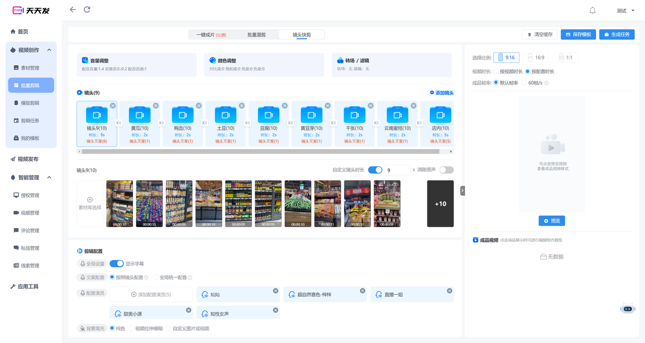 (2)批量剪辑(支持一键成片、批量混剪、镜头快剪等多种剪辑模式)