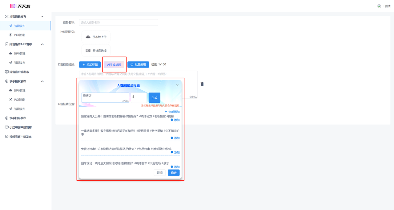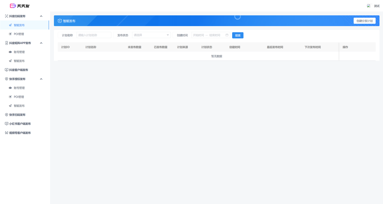 天天发矩阵系统专注精细化、可视化视频剪辑、账号批量管理发布 可提供行业数字化解决方案 可提供企业数字化管理方案 秉持用技术赋能未来理念 为更多品牌数字化智能化赋能