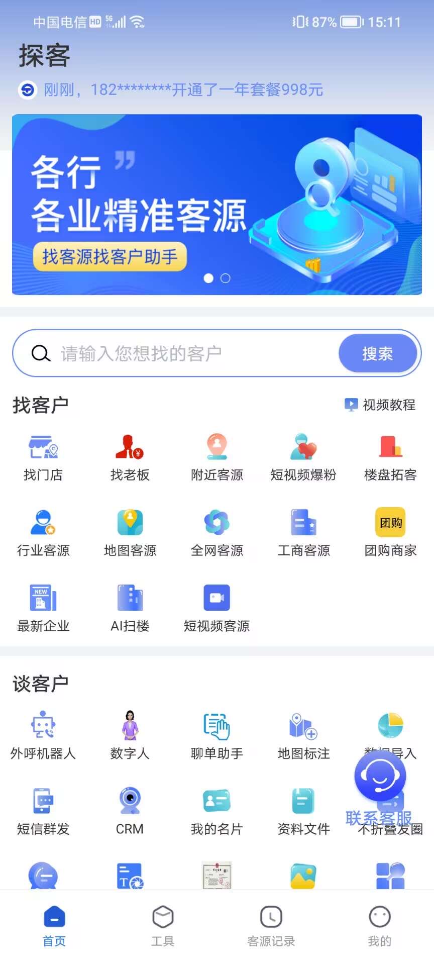 探客专注于为企业老板、销售人员及行业从业者提供精准客户挖掘、客户关系管理和营销推广服务