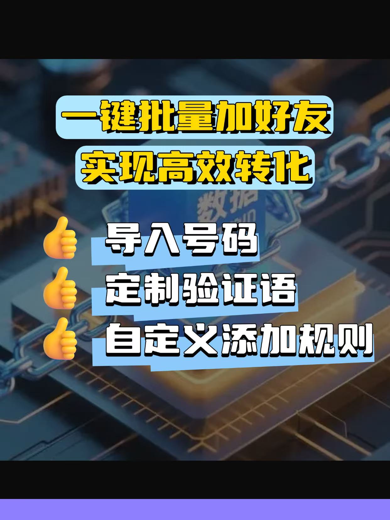- 安全:模拟人工操作 + 官方合规工具,微信自动加好友封号率比破解类低 99%;