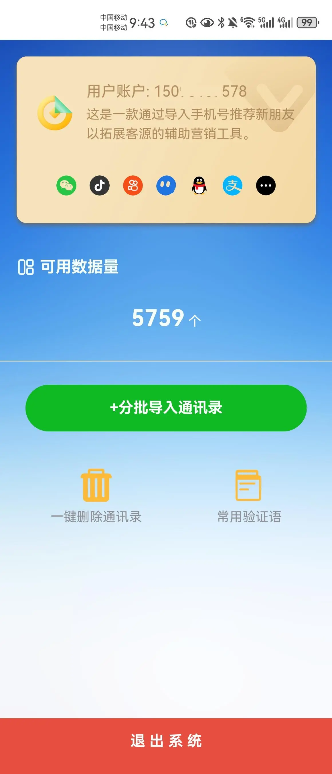 数据不用自己找、自己整理,公司都给统一下发好了,他们只需要打开手机APP登录账号,点一下“导入通讯录”,就能借着微信推荐新朋友的功能拓客,全程就两步,啥复杂操作都没有,不用操心这操心那,直接就能用,特别贴合他们的习惯和需求。