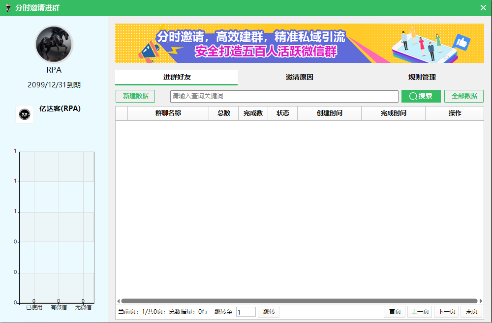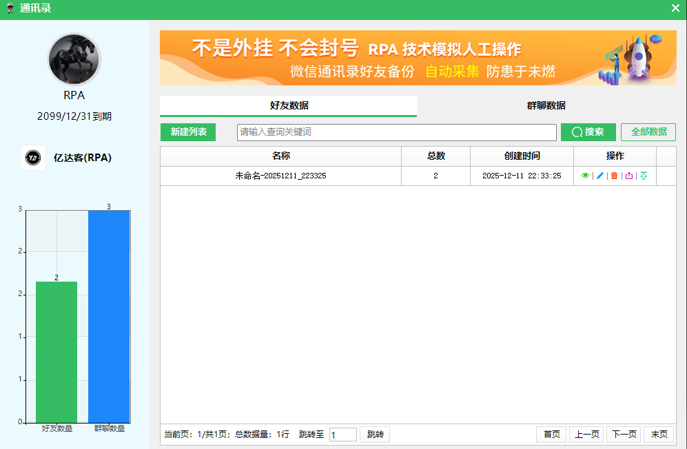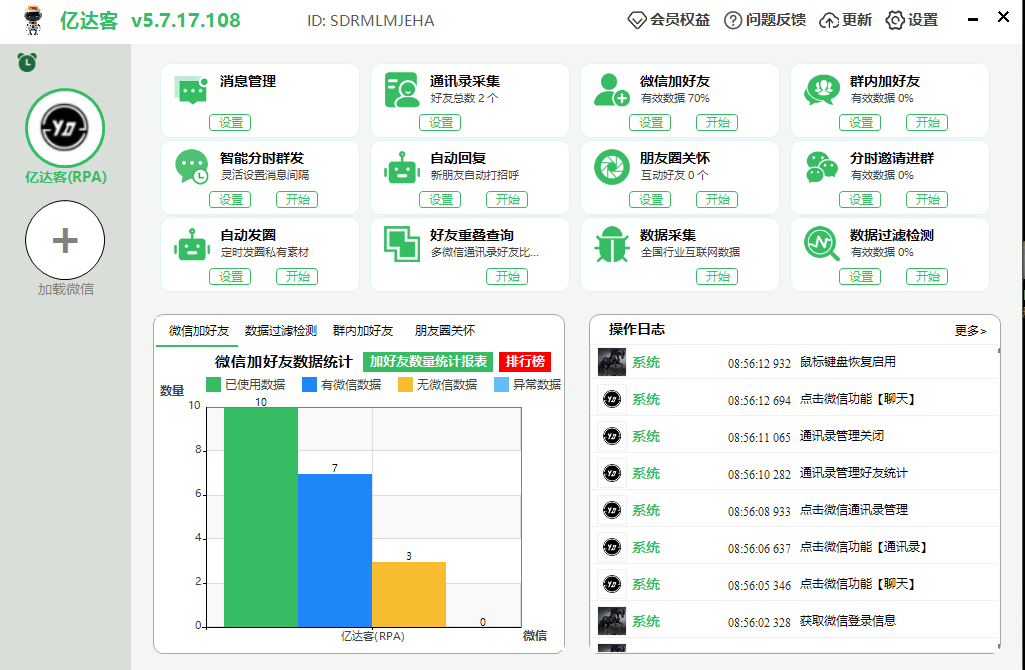 亿达客RPA系统AI智能版的核心能力聚焦于微信生态的自动化操作,主要功能包括:
