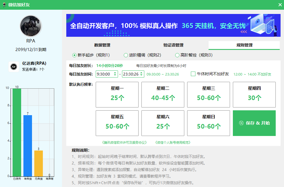 亿达客RPA是一款专注于微信自动化操作的机器人流程自动化(RPA)软件,核心功能批量添加好友及AI智能回复和自动发朋友圈等功能,适用于营销拓客和客户服务场景