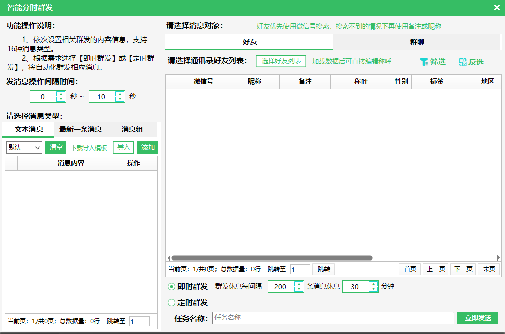 3.智能分时群发:智能分时模拟人工自动化群发(文字,图片,文件)可群发好友和群发到群
